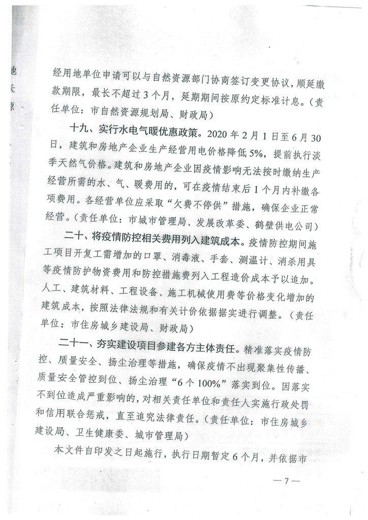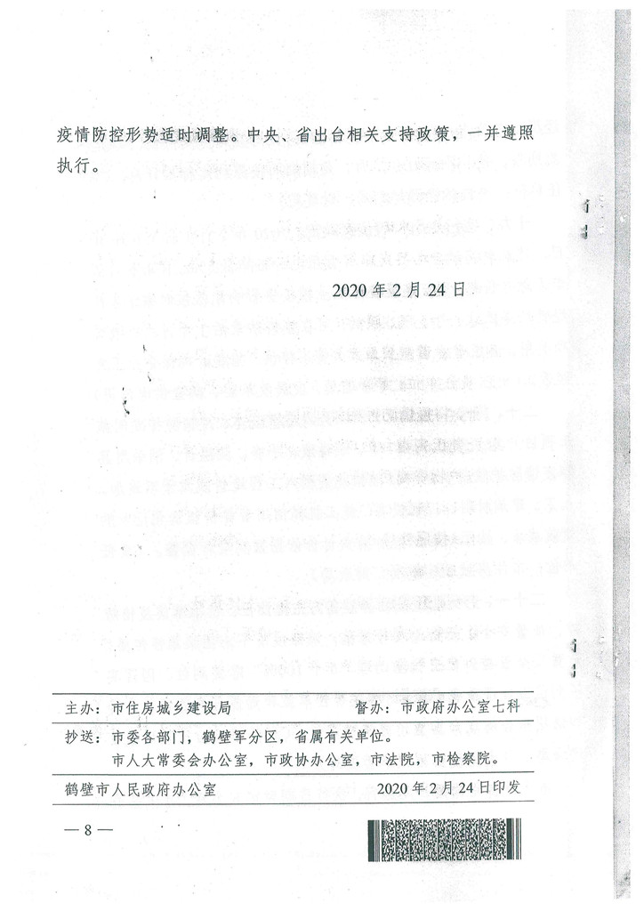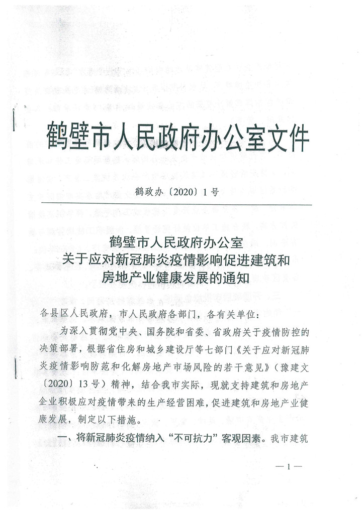 鶴壁市人民醫(yī)院政府辦公室文件關(guān)于應(yīng)對(duì)新冠肺炎疫情影響促進(jìn)建筑和房地產(chǎn)業(yè)健康的發(fā)展通知