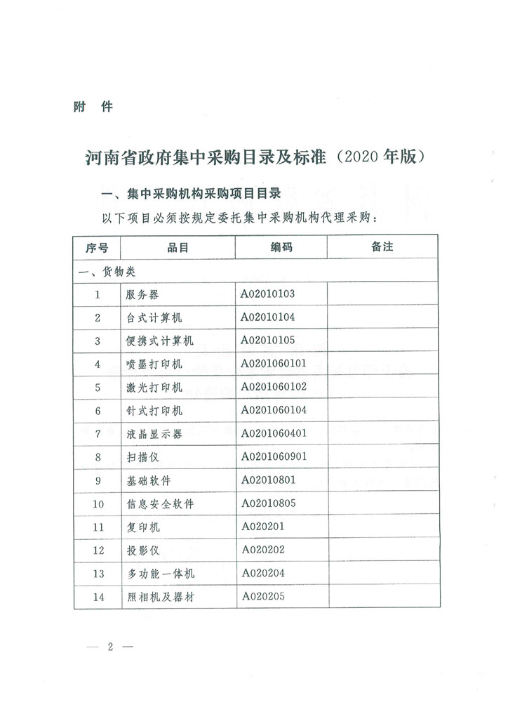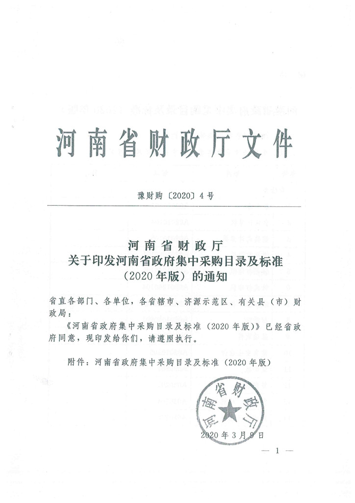 河南省財(cái)政廳關(guān)于印發(fā)河南省政府集中采購目錄及標(biāo)準(zhǔn)(2020年版)的通知